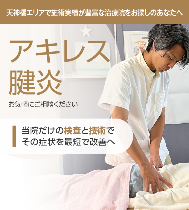 病院やほかの治療院で改善しなかったとしても諦める必要はありません。アキレス腱炎は豊富な施術実績を誇る当院にお任せください。