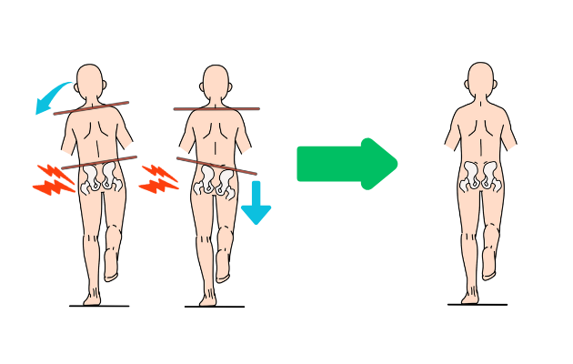 日常生活での注意点を理解してもらえるように説明し、正しい歩き方や身体の使い方を自然にできるようになってもらい痛みの消失と再発予防を行います。