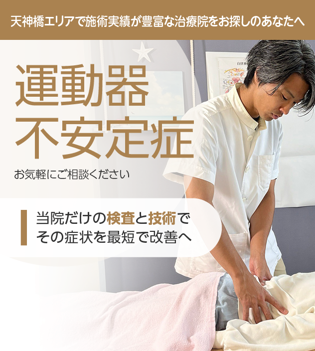病院やほかの治療院で改善しなかったとしても諦める必要はありません。運動器不安定症は豊富な施術実績を誇る当院にお任せください。