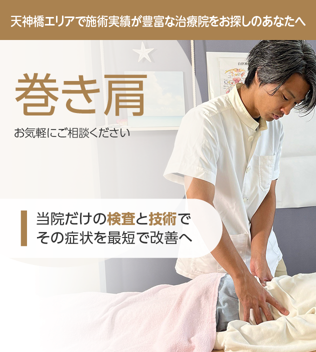 病院やほかの治療院で改善しなかったとしても諦める必要はありません。巻き肩は豊富な施術実績を誇る当院にお任せください。