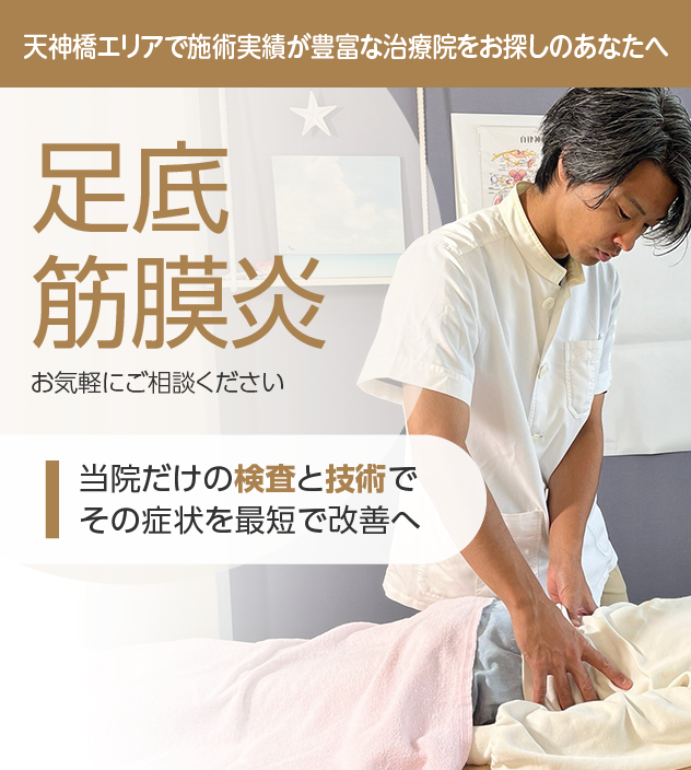 欧米の足医学と日本の伝統的な足育術を統合させた足の専門施術が当院の大きな特徴です。足底筋膜炎に対する豊富な改善実績があり、大手口コミサイトでも高い評価をいただいています。
